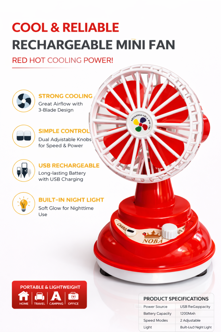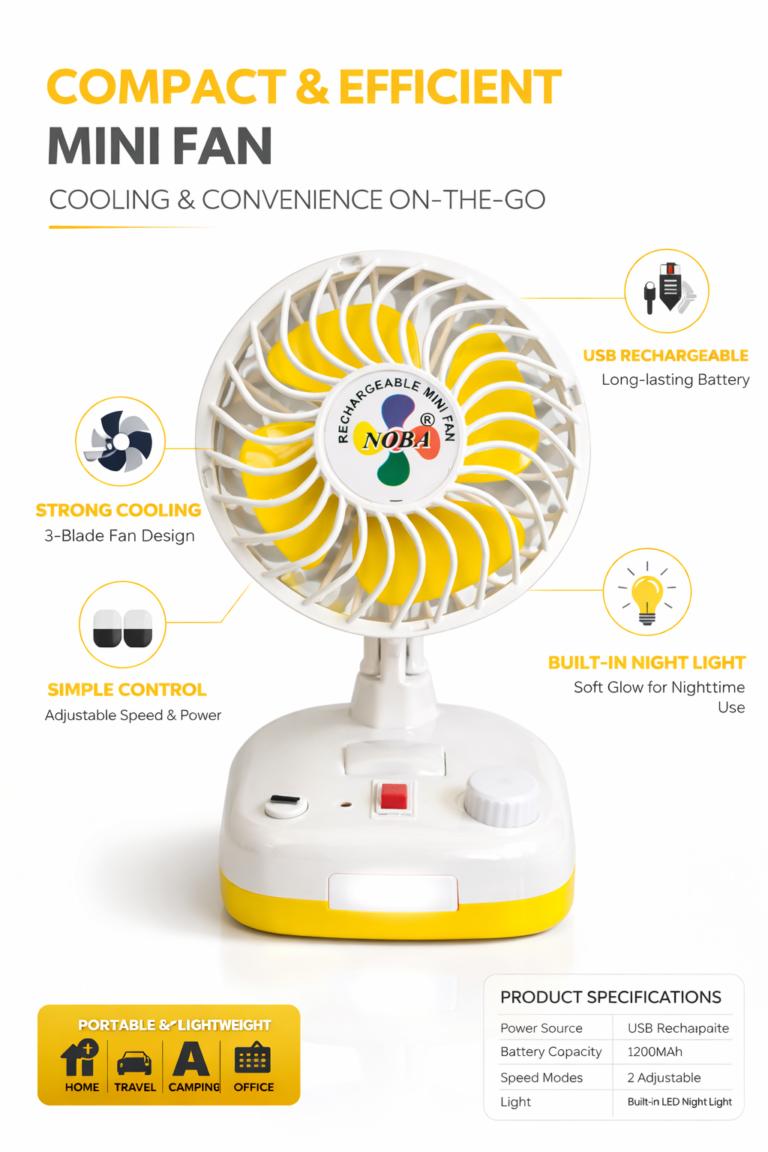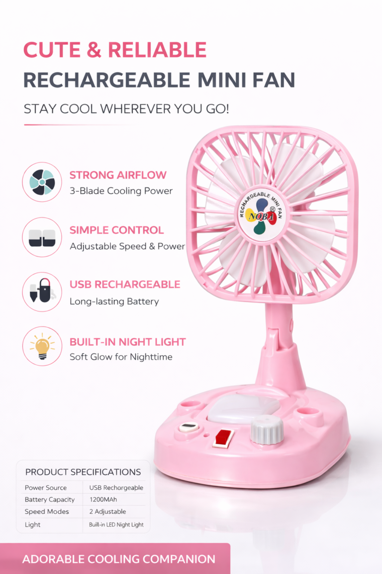 IDOLESHOP 3-Blade Multifunctional Rechargeable USB Fan with LED Light