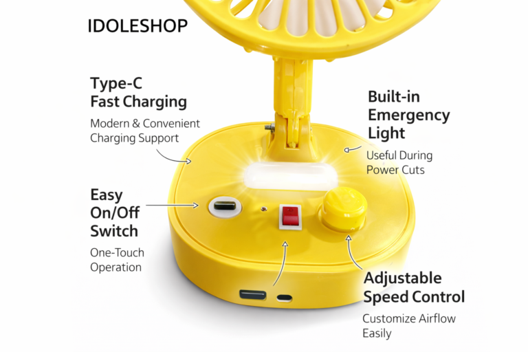 IDOLESHOP 4 Blade Multifunctional Rechargeable USB Fan (C-Type Charging)