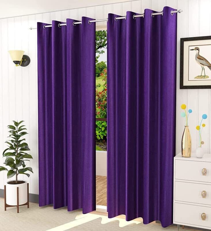 IDOLESHOP 213.5 cm (7 ft) Door Polyester Semi Transparent Curtain (Pack of 2) (Purple, Plain) | Elegant Light Filtering Eyelet Curtains for Living Room & Bedroom