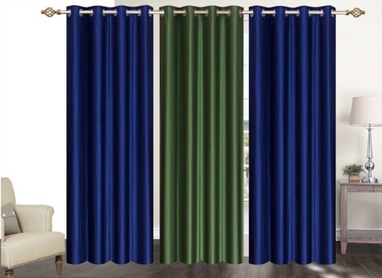 IDOLESHOP 274.5 cm (9 ft) Long Door Polyester Blackout Curtain (Pack of 3) (Dark Blue & Green, Solid) | Premium Room Darkening Eyelet Curtains for Living Room & Bedroom