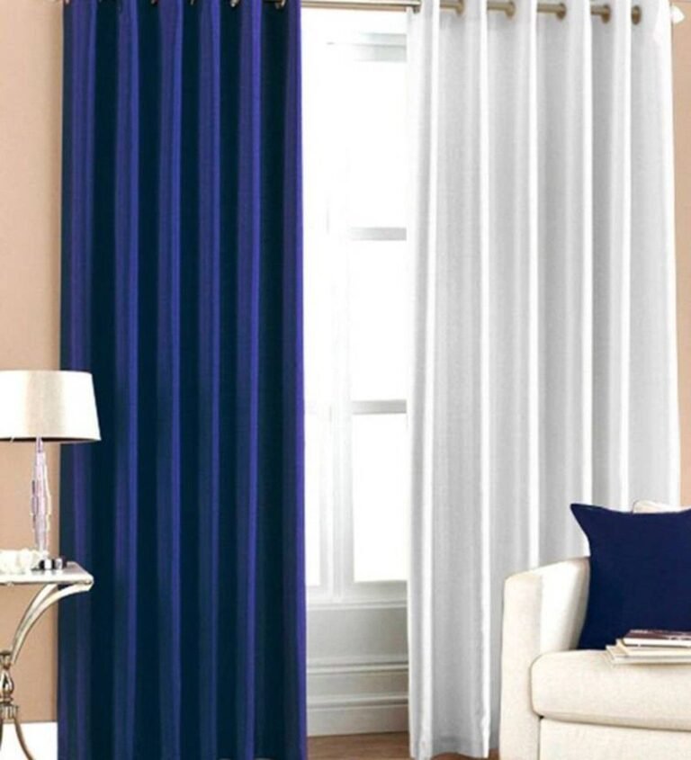 IDOLESHOP 274.5 cm (9 ft) Long Door Polyester Room Darkening Curtain (Pack of 2) (White & Blue, Solid) – Stylish Light Control Curtains for Living Room & Bedroom