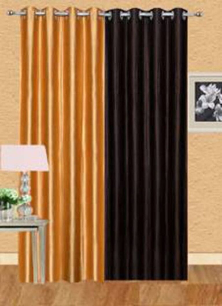 IDOLESHOP 274.5 cm (9 ft) Long Door Polyester Room Darkening Curtain (Pack of 2) – Golden & Black Solid Premium Curtains for Living Room & Bedroom
