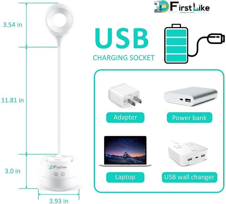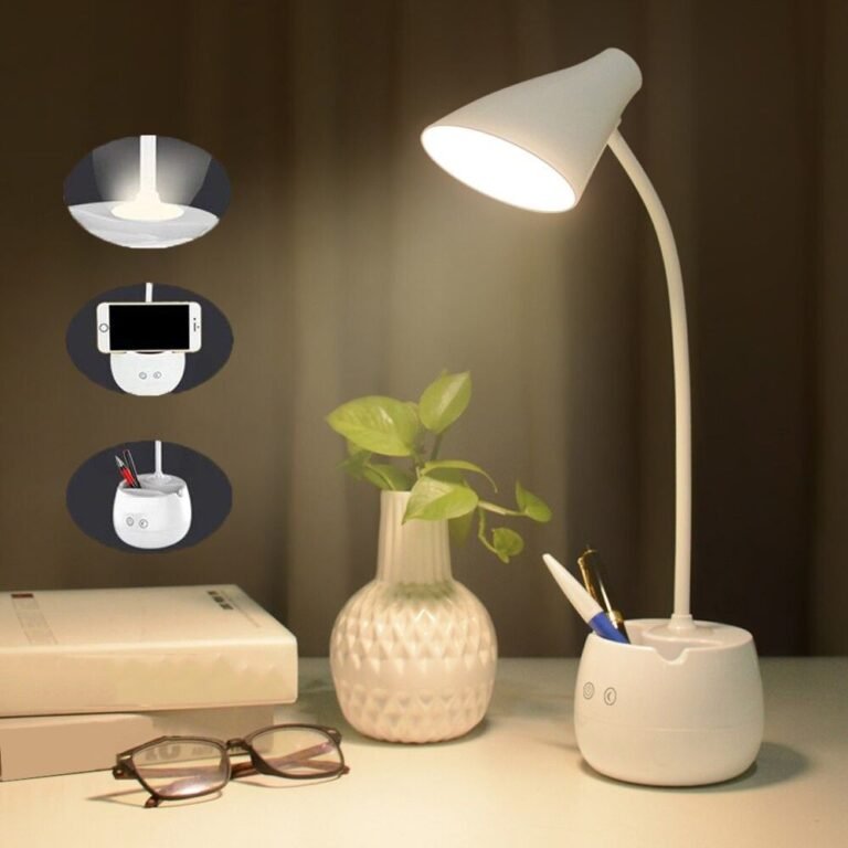 Idoleshop Multi-Functional LED Desk Lamp with Pen Holder – 3 Color Modes, USB Rechargeable, Eye-Care Study Lamp (35 cm, White)