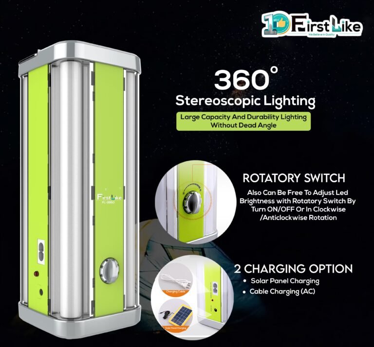 IDOLESHOP 4 Tube 360° Extra Bright Rechargeable Lantern with USB Mobile Charging – 8 hrs Backup (Green)