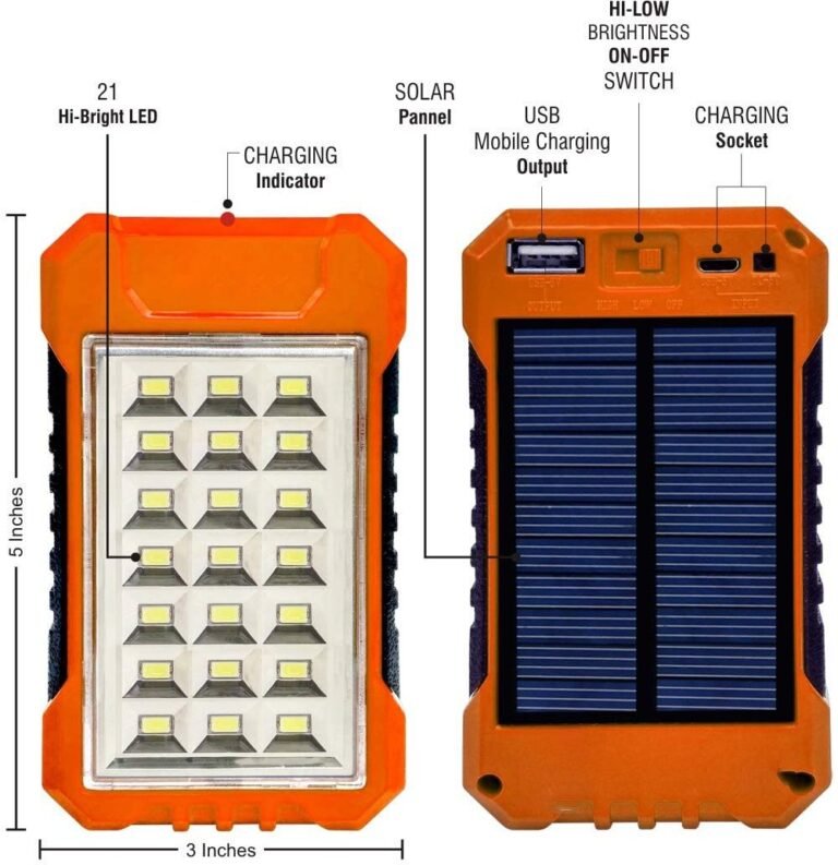 IDOLESHOP Power Bank Cum 21 Hi-Bright LED Rechargeable Solar Emergency Light (Orange)