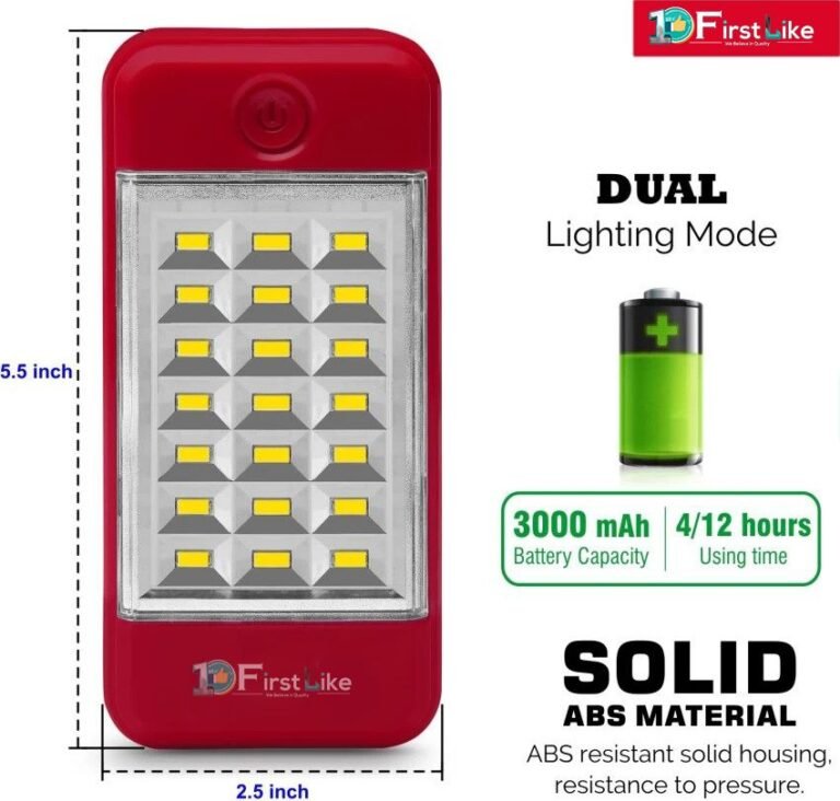 IDOLESHOP USB Mobile Power Bank Cum 21 LED Emergency Light (Red) – Solar Rechargeable | 6 Hours Backup Flood Lamp