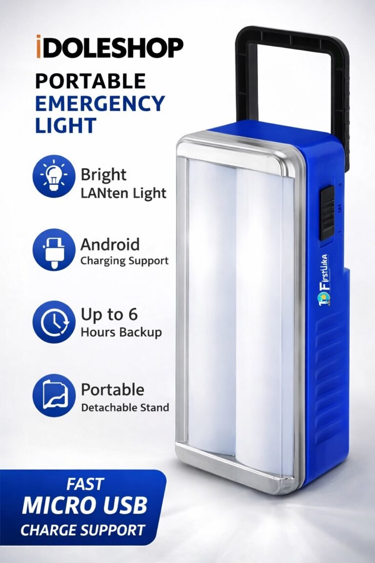 IDOLESHOP Portable High-Bright 2 Tube Rechargeable Lantern with Android Charging Support (Blue)