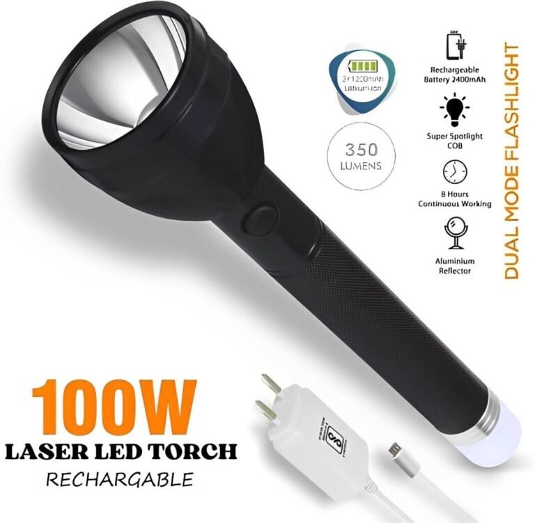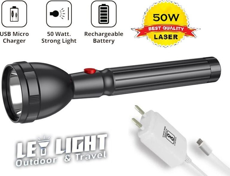 IDOLESHOP 50W 2-in-1 Lithium Battery Long Range LED Torch Light – Rechargeable 2400mAh