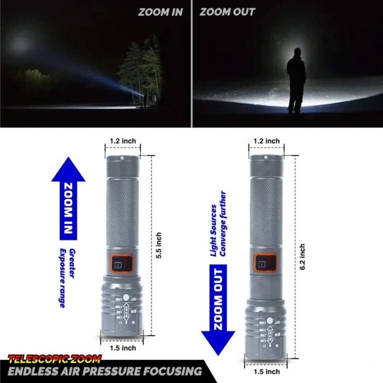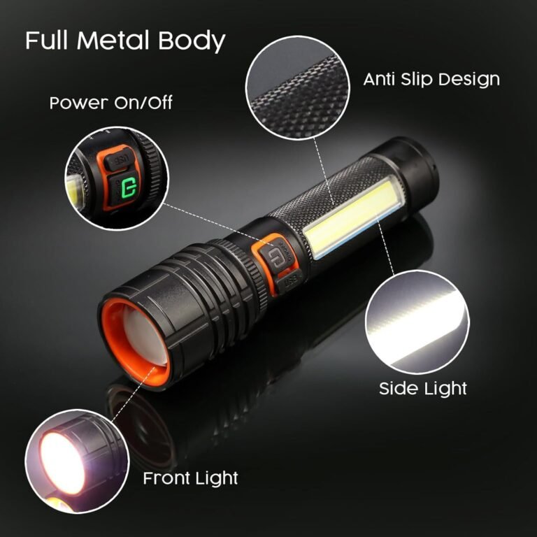 IDOLESHOP 50W Zoomable LED Metal Flashlight with COB – 5 Modes Super Bright Torch