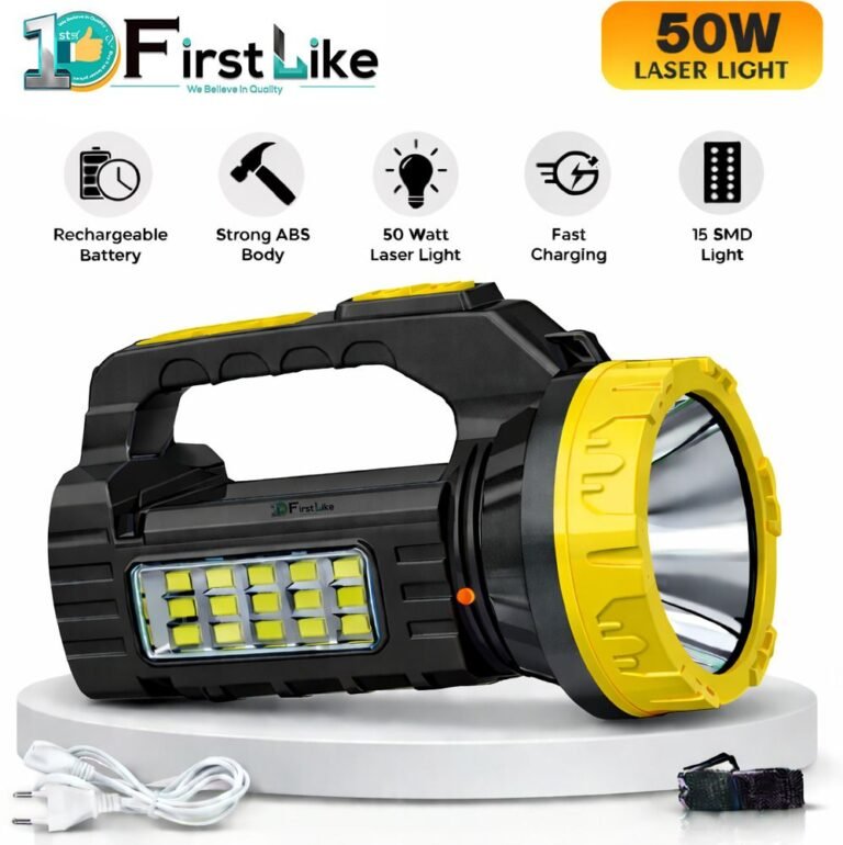 IDOLESHOP 50W Torch with Back Light – 2-in-1 Rechargeable Emergency Flashlight