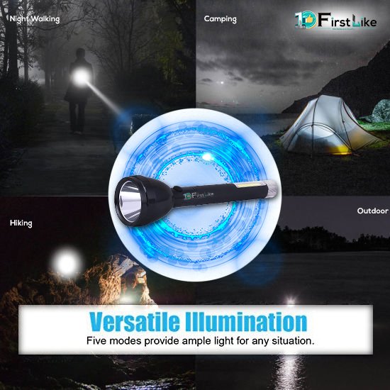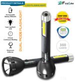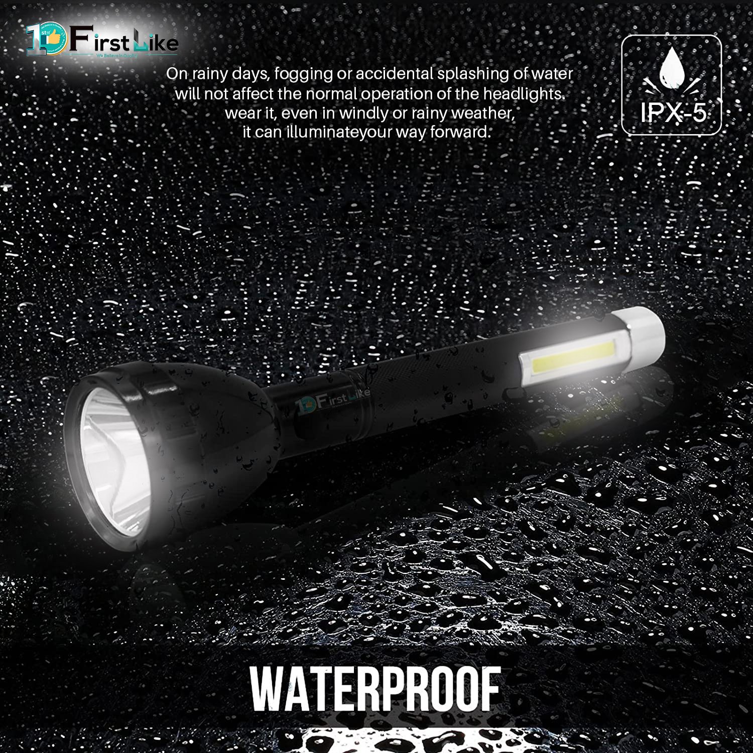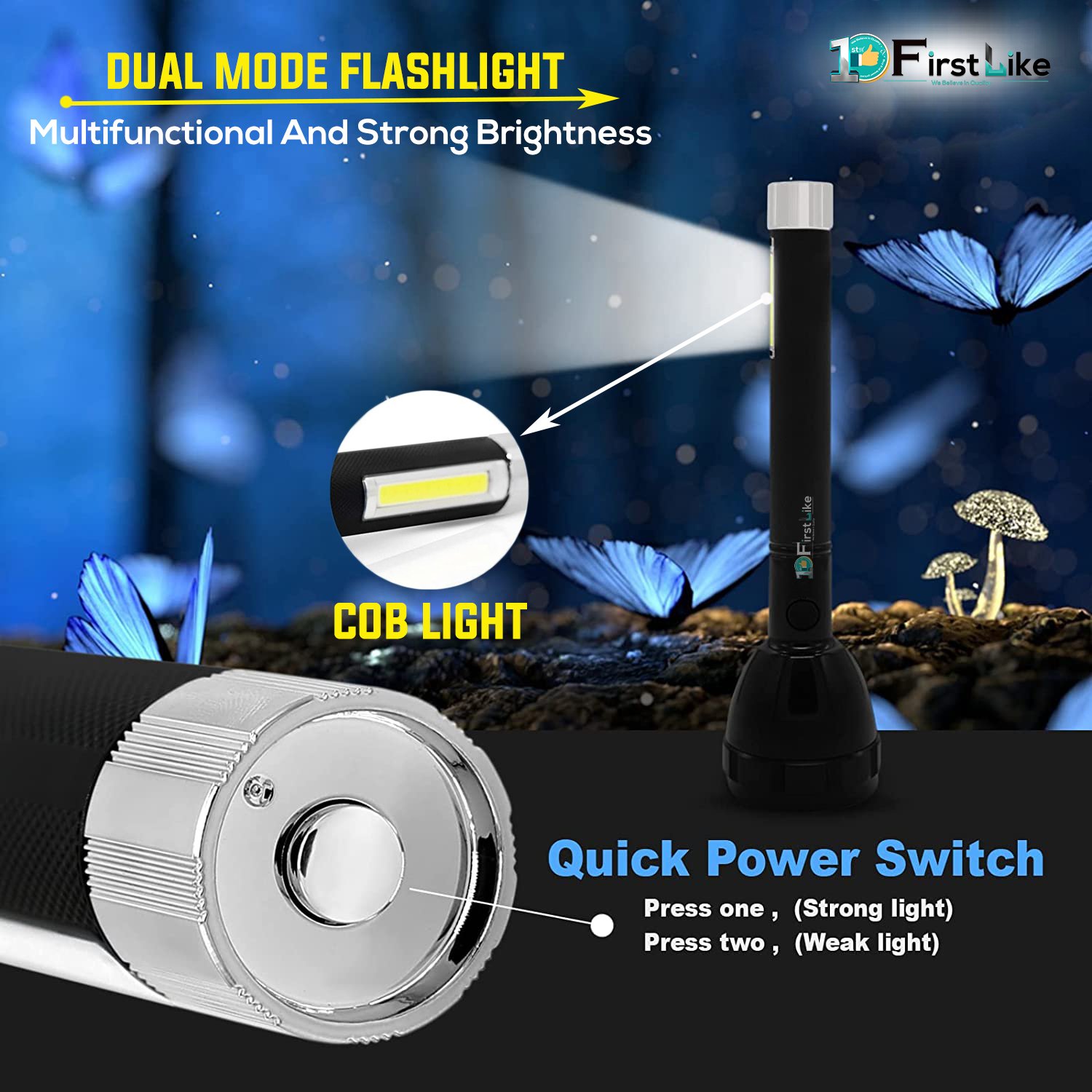 Light up every situation with the IDOLESHOP Dual Mode Rechargeable Torch. Equipped with a 100W long-distance LED flashlight and a 30W emergency COB side light, this torch is ideal for outdoor use, power cuts, and emergency situations.