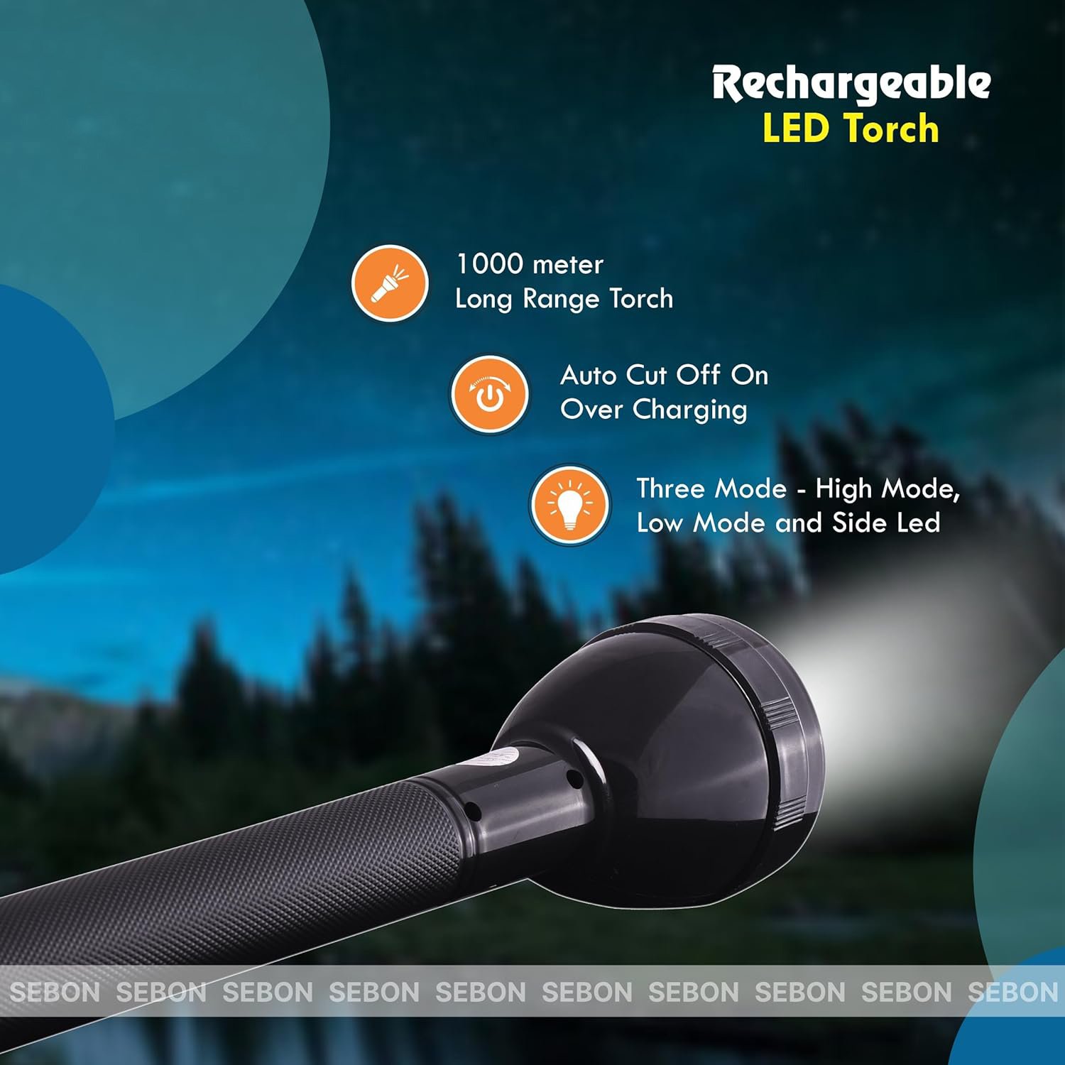 IDOLESHOP 50W Rechargeable LED Torch Light | Long Range Flashlight with Handle | 2000mAh Battery | Multiple Lighting Modes | ABS Plastic Body