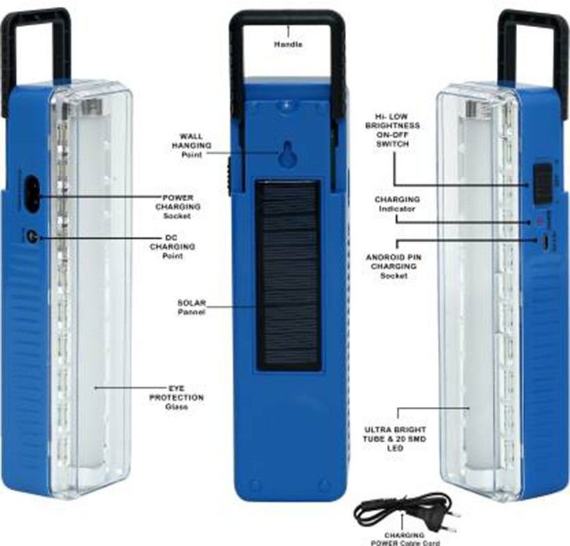 Light up your surroundings with the IDOLESHOP 20 Hi-Bright LED Solar Rechargeable Emergency Lantern, designed for efficiency, durability, and long backup performance. Featuring 20 high-bright SMD LEDs with an additional tube light, this lantern delivers clear and wide illumination, ideal for both indoor and outdoor use.