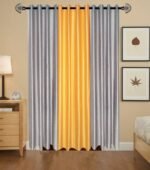 IDOLESHOP 213.5 cm (7 ft) Door Polyester Blackout Curtain (Pack of 3) – Premium Grey & Yellow Solid Curtains for Complete Light Blocking & Elegant Home Décor