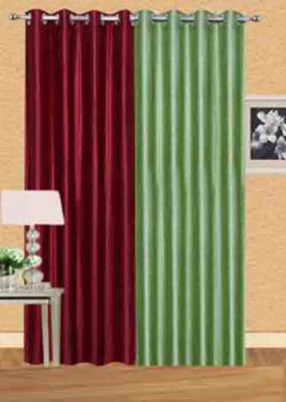 IDOLESHOP 213.5 cm (7 ft) Door Polyester Room Darkening Curtain (Pack of 2) (Green & Maroon, Solid) – Stylish Light Control Curtains for Home Décor