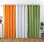 IDOLESHOP 213.5 cm (7 ft) Door Polyester Room Darkening Curtain (Pack of 3) (Orange, White, Green, Plain)