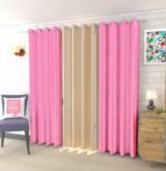 Stylish IDOLESHOP room darkening curtains (Pack of 3) in baby pink & beige, made from premium polyester to softly filter light while enhancing your home décor.