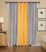 Elegant IDOLESHOP 9 ft polyester blackout curtains in grey & yellow, designed for superior light blocking, privacy, and modern home décor. Pack of 3 with easy installation.