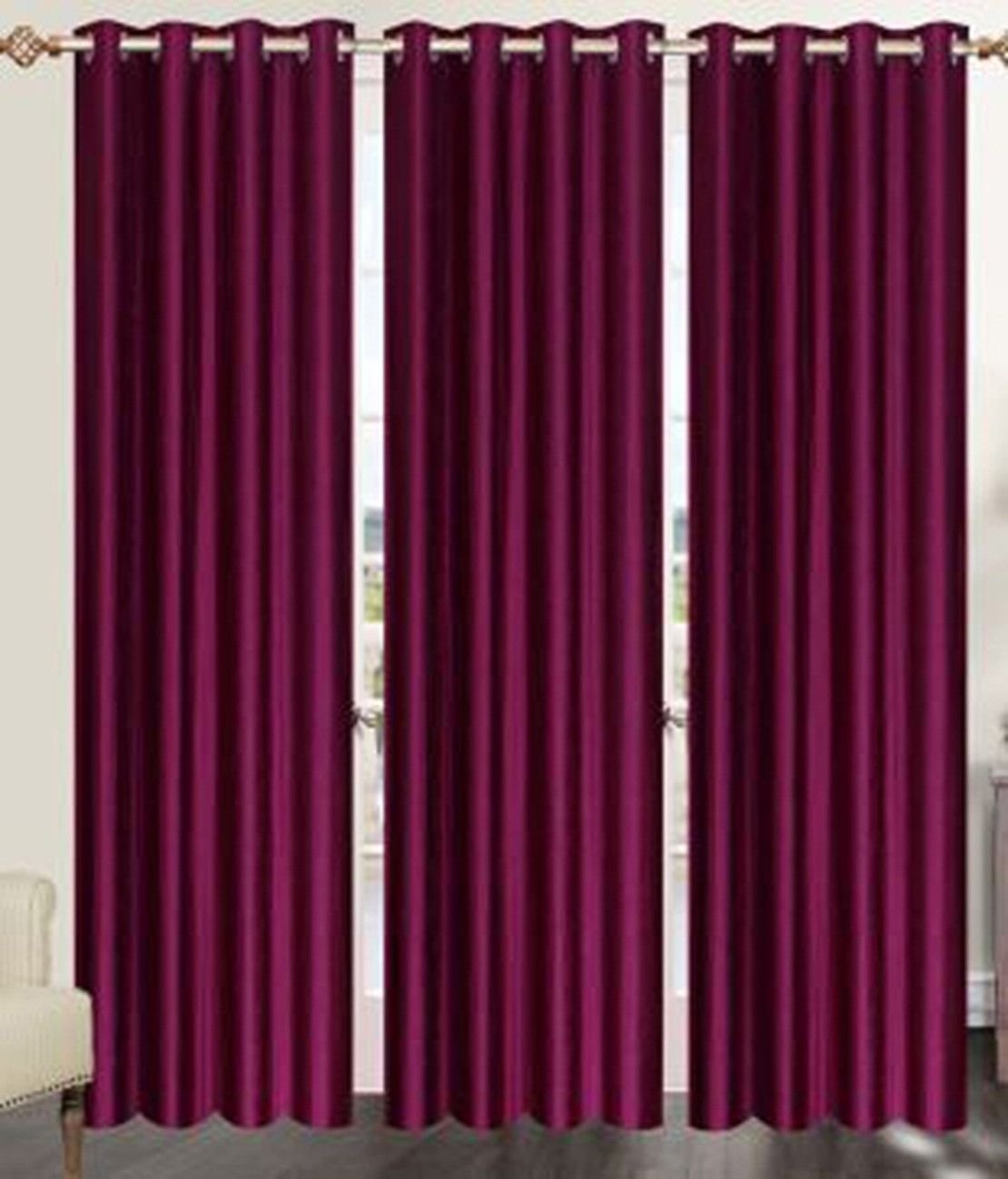 IDOLESHOP 274.5 cm (9 ft) Long Door Polyester Blackout Curtain (Pack of 3) (Purple, Solid)