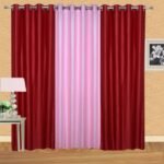 IDOLESHOP 274.5 cm (9 ft) Long Door Polyester Blackout Curtain (Pack of 3) (Red & Pink, Solid)