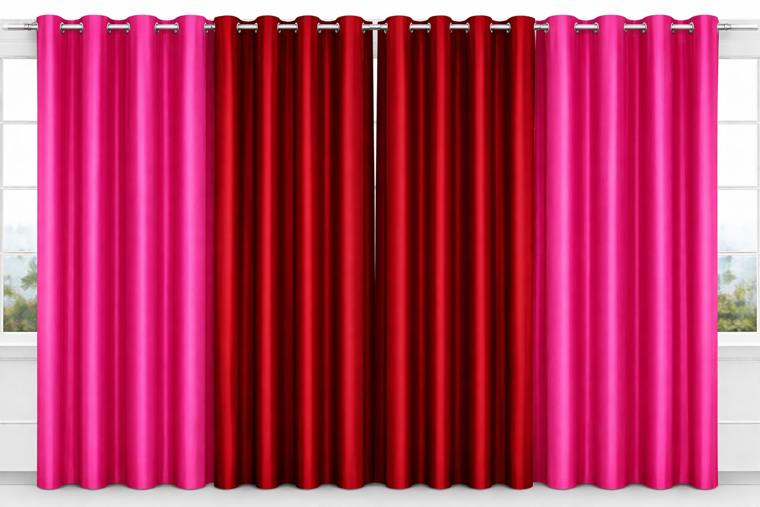 IDOLESHOP 9 ft blackout curtains in Red & Pink (Pack of 4) offer vibrant design, excellent light blocking, and premium quality—perfect for enhancing décor and privacy in any room.