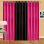 Stylish IDOLESHOP Black & Pink Blackout Curtains (Pack of 3), 9 ft length, offering complete light blocking, privacy, and modern home décor appeal.