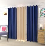 Premium IDOLESHOP room darkening curtains (Pack of 3) in navy blue & beige, designed to enhance décor while softly controlling light and ensuring privacy.