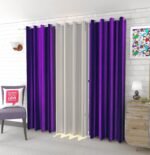 Premium IDOLESHOP 9 ft polyester curtains in purple & white, designed for room darkening, privacy, and elegant home décor. Pack of 3 with easy installation.