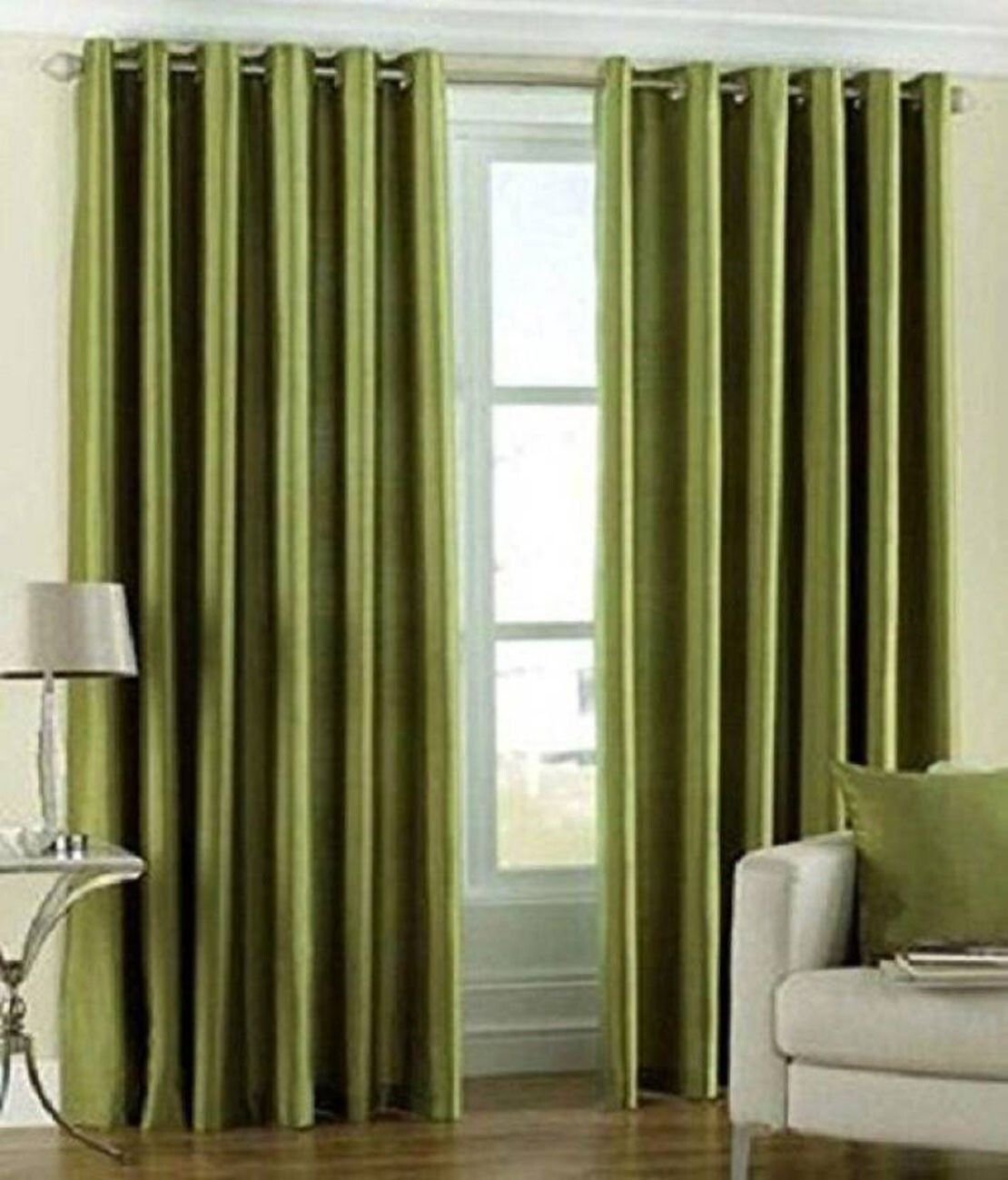 Stylish IDOLESHOP 9 ft semi-transparent curtains in Green & Beige, offering soft light filtering with a fresh, elegant look for any space.