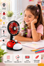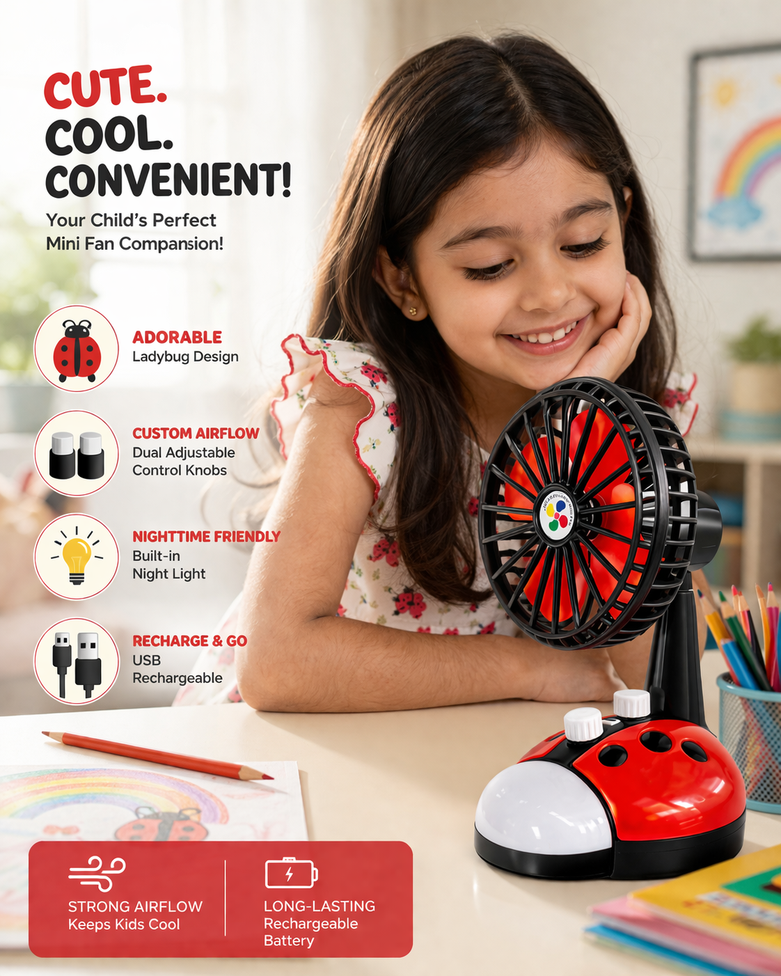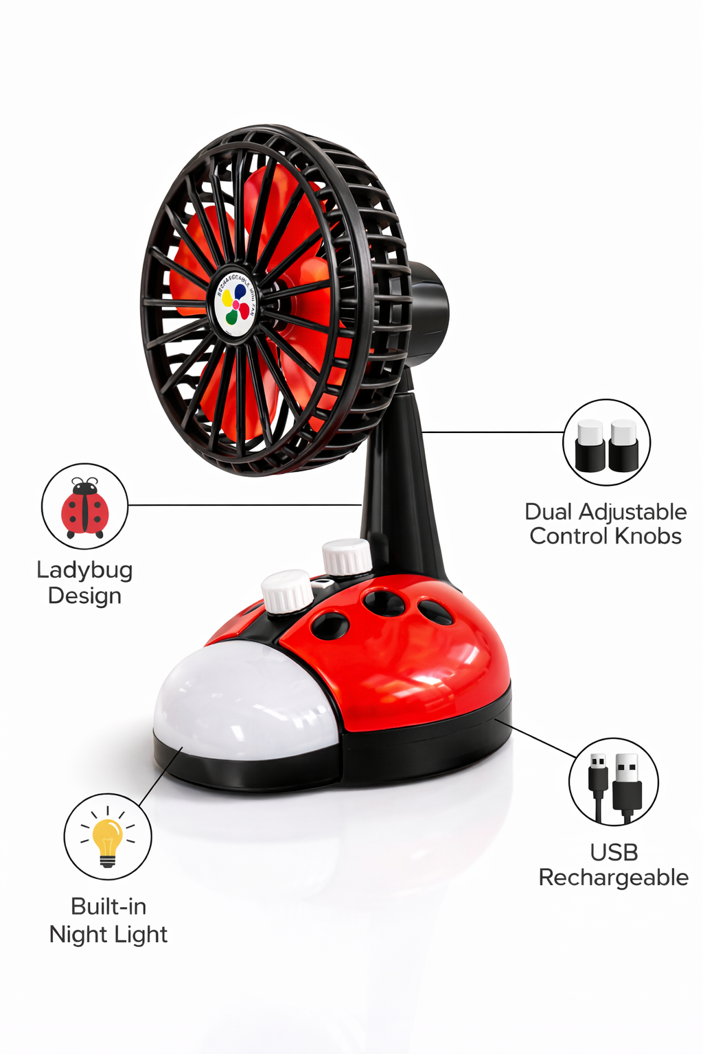 Add style and comfort to your space with the IDOLESHOP 3 Blade Multifunctional Portable Fan, designed with a unique ladybug-inspired look. This compact yet powerful fan combines strong airflow, modern Type-C charging, emergency lighting, and easy speed control, making it perfect for daily use and travel.