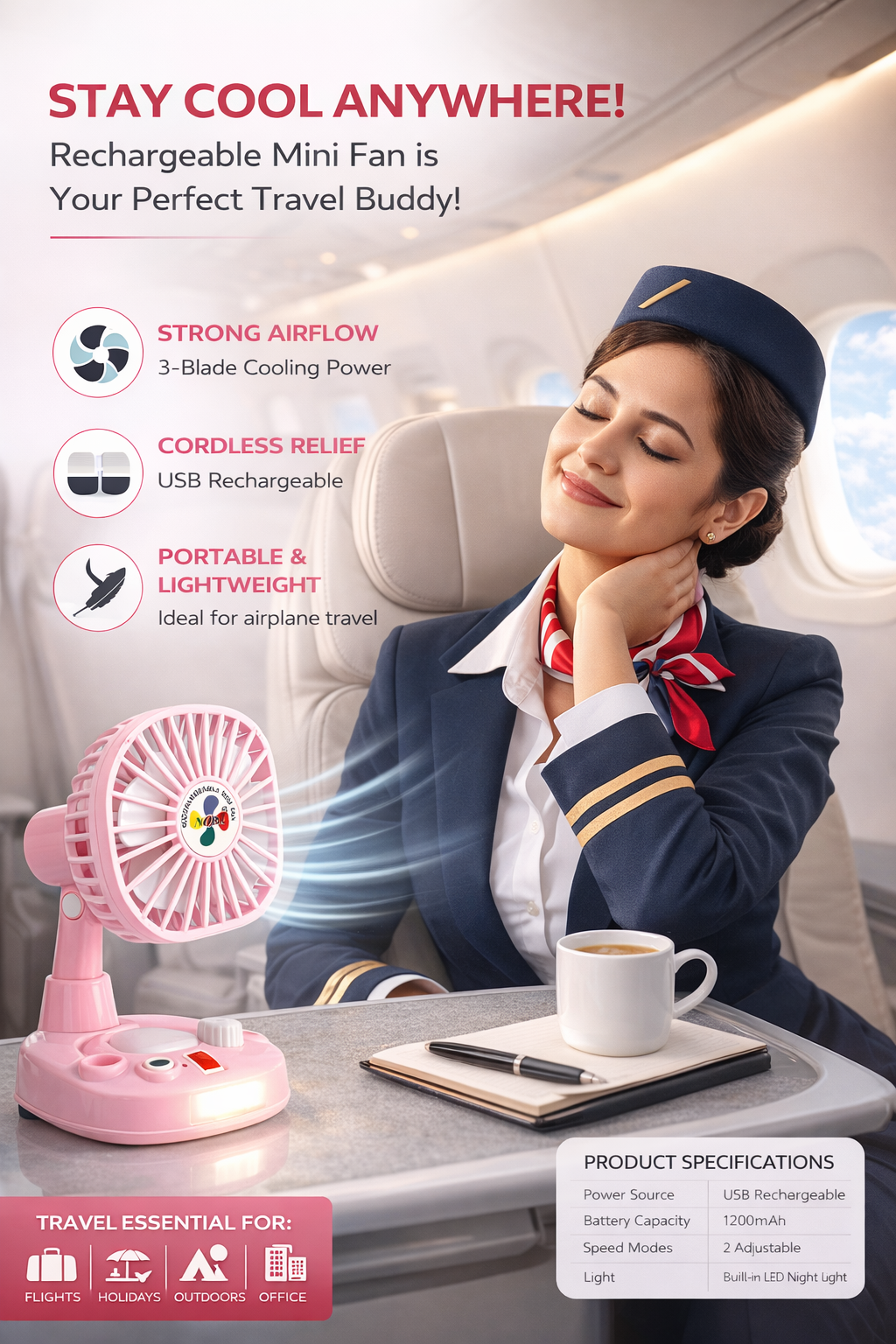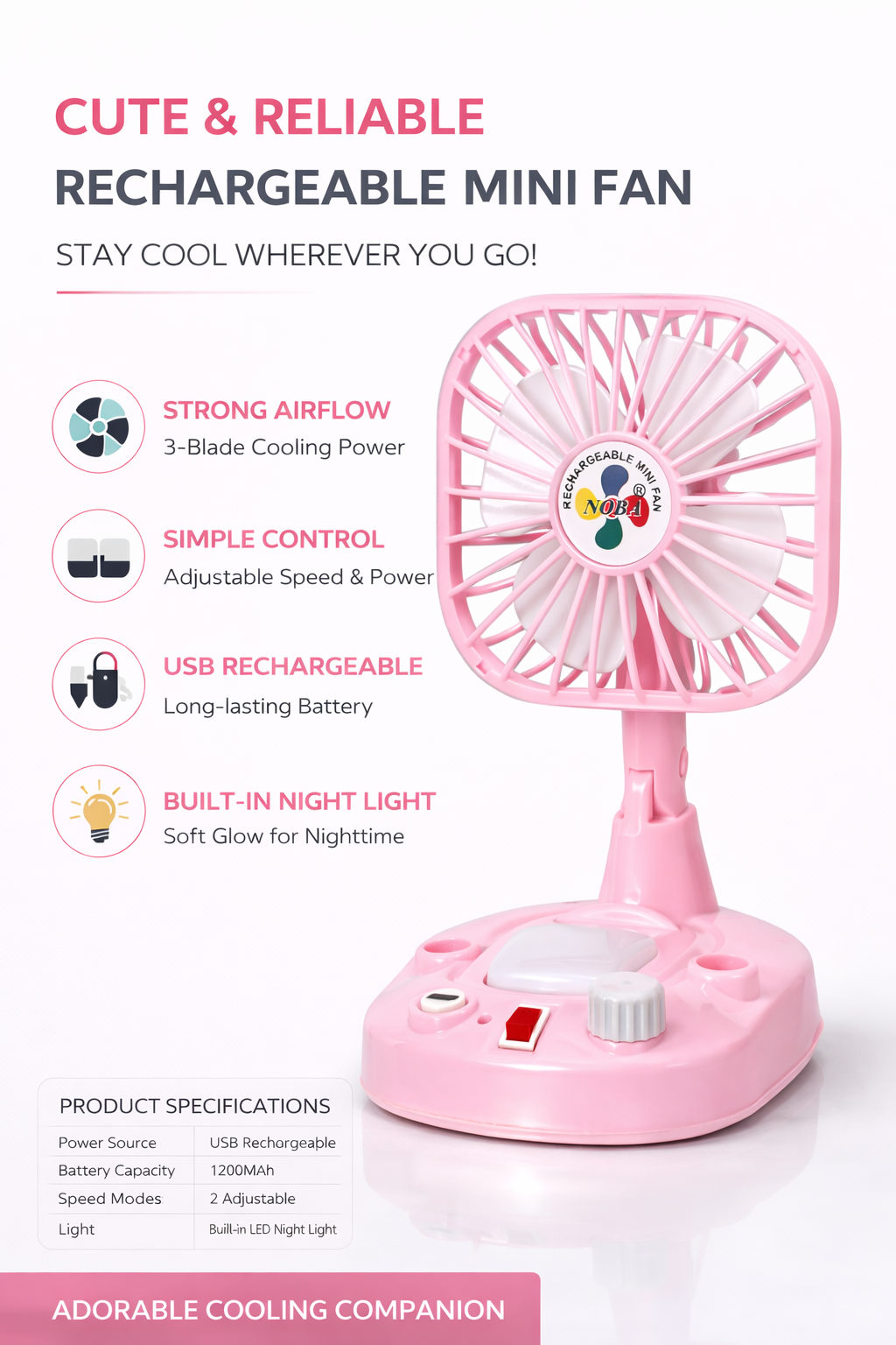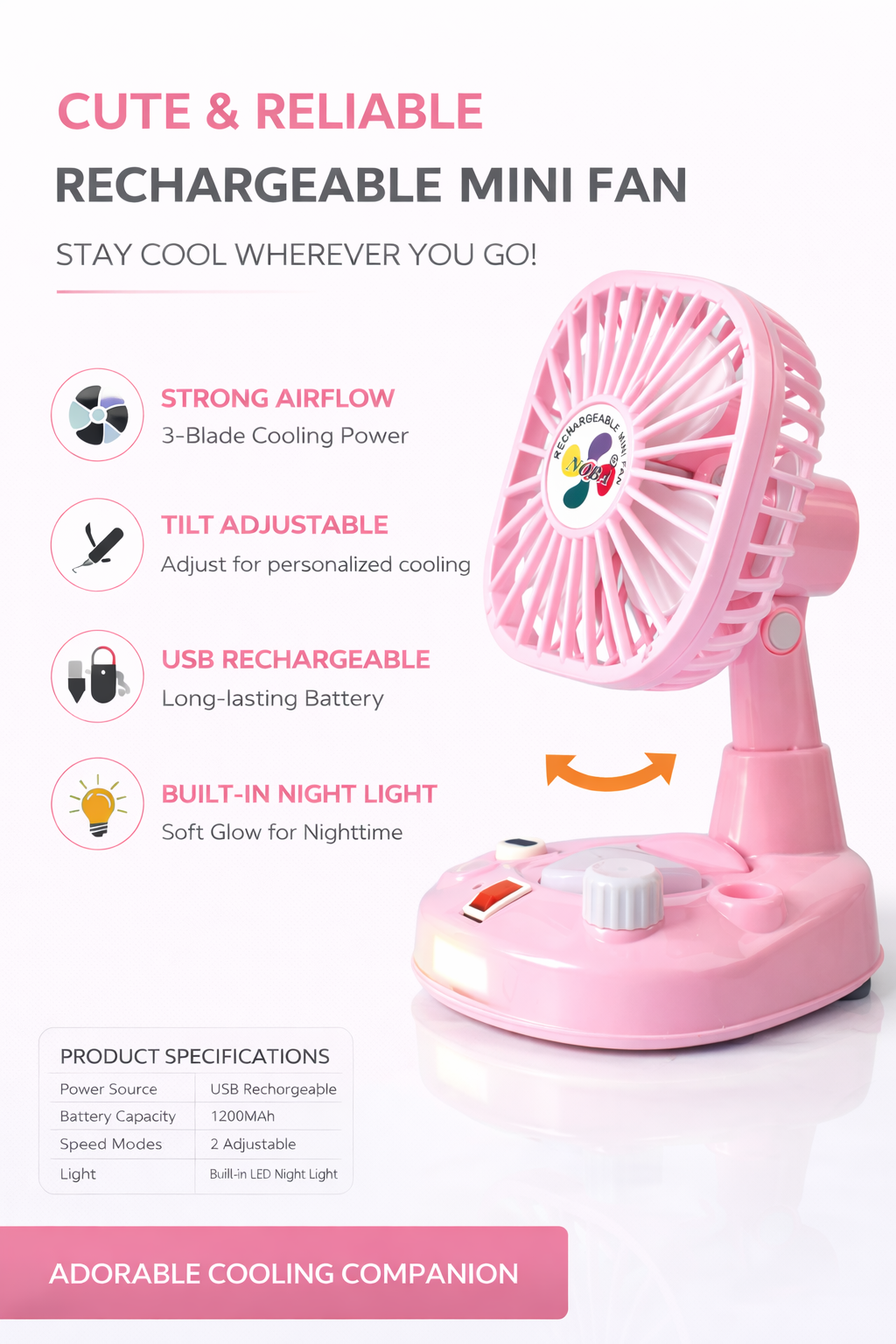 - Product Type: Portable Rechargeable USB Fan