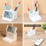 Bring style, functionality, and comfort to your workspace with the IDOLESHOP 3 Color LED Rechargeable Study Lamp, designed for modern lifestyles. This smart desk lamp is more than just a light—it’s a complete study companion with a built-in phone holder and pen organizer, making your desk neat, organized, and productive.