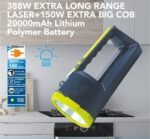IDOLESHOP 388W Laser Torch + 150W Big COB Light with Power Bank – 20000mAh Rechargeable Flashlight