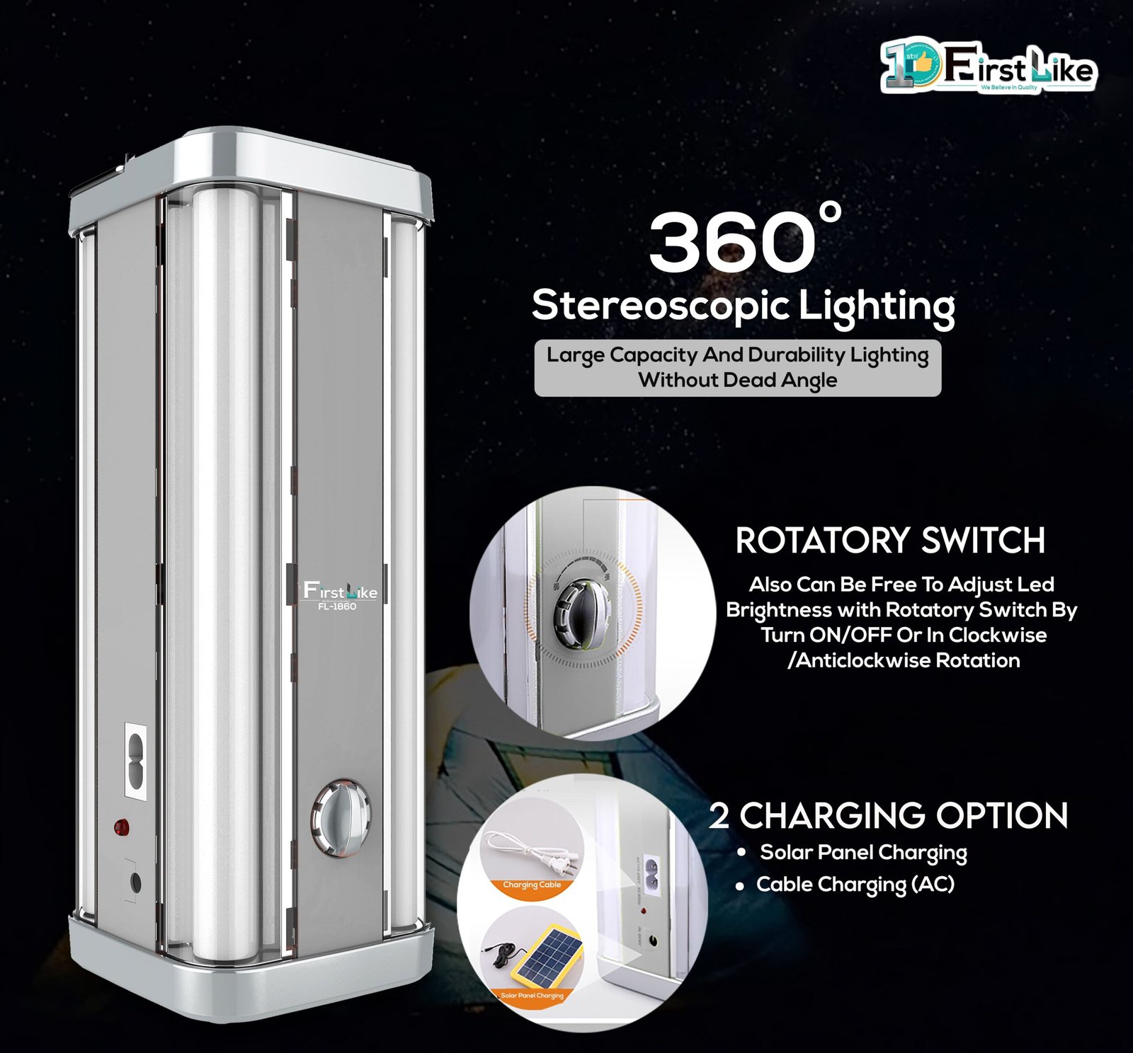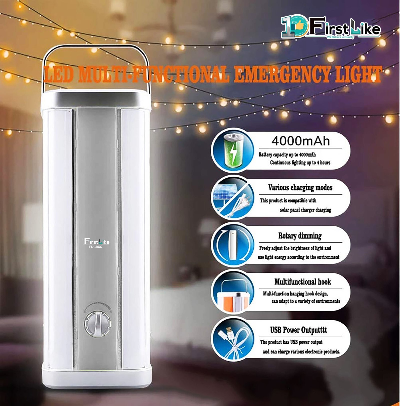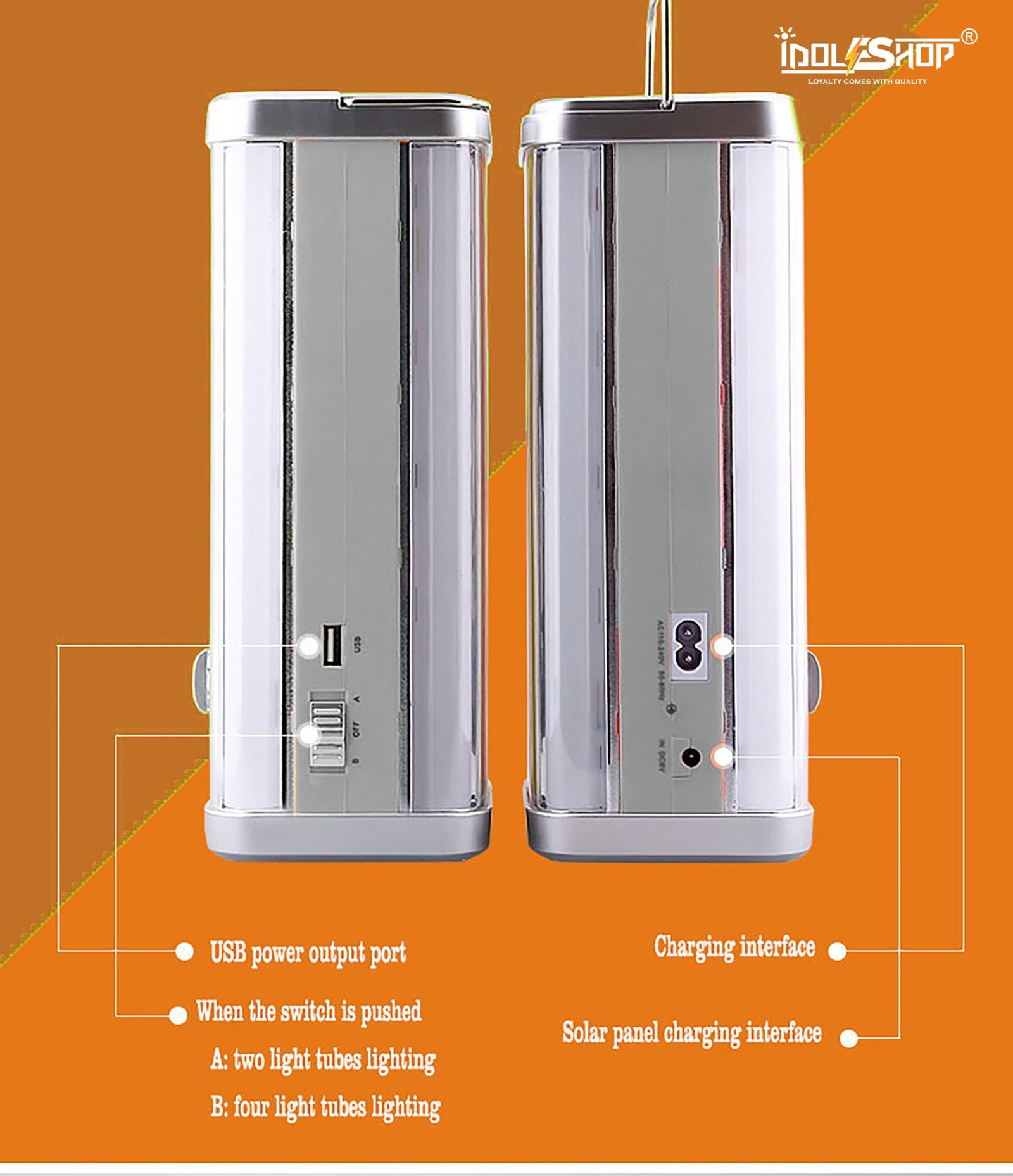 Stay prepared for any power outage with the IDOLESHOP 4 Tube 360° Emergency Lantern, designed for maximum brightness, wide coverage, and multi-functionality. Equipped with 4 high-intensity LED tubes, this lantern delivers uniform 360-degree lighting, ensuring every corner is well-lit.