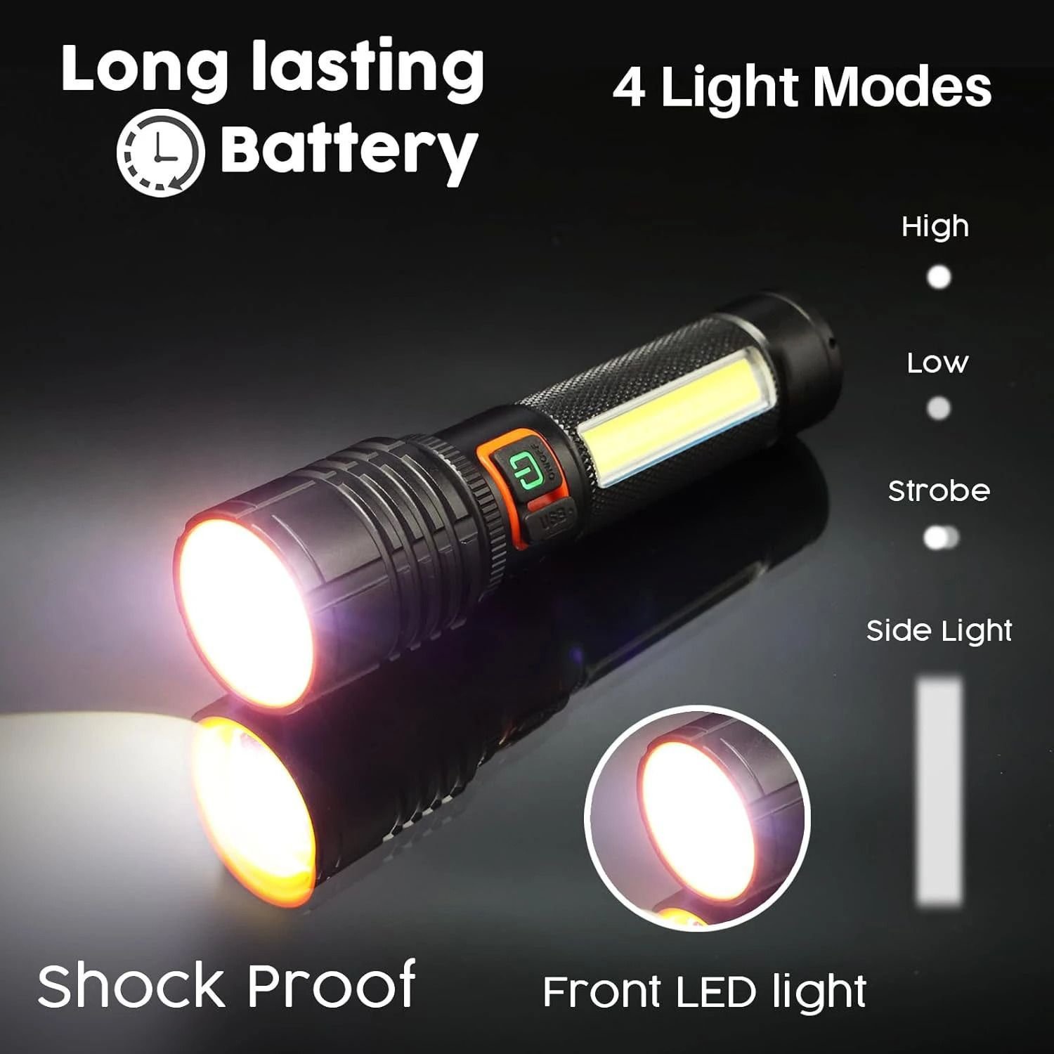 IDOLESHOP 75W Long Range Emergency Torch Light with Side COB – 3 Modes