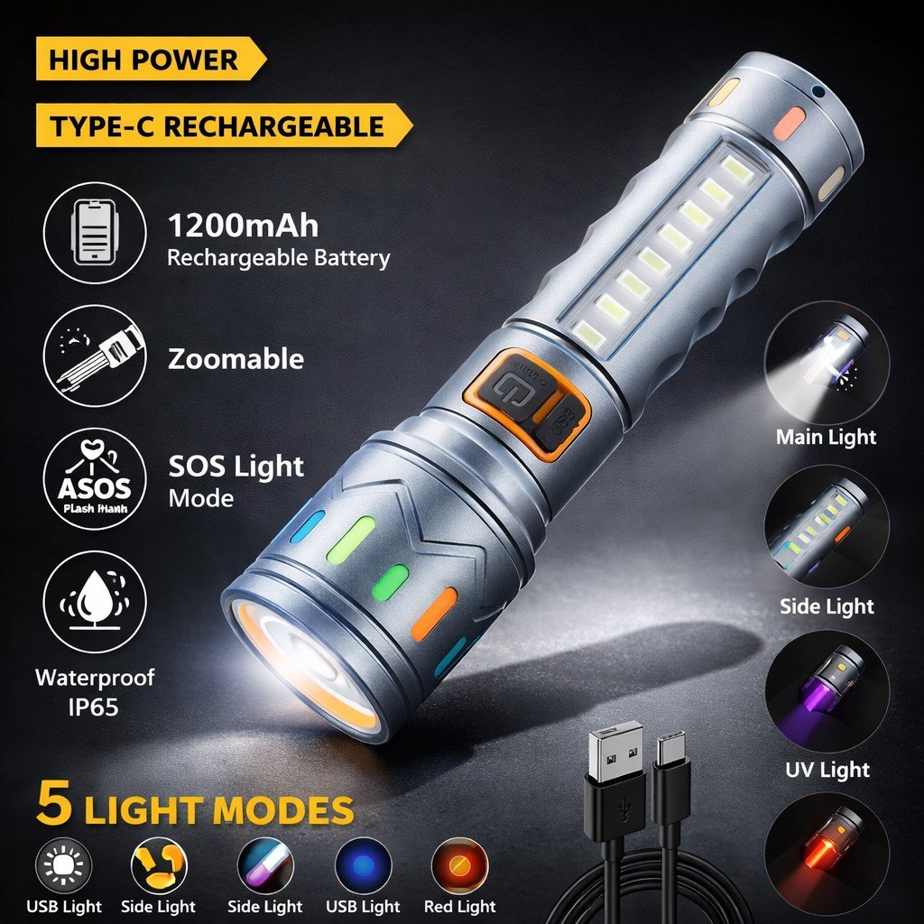 Upgrade your lighting experience with the powerful and durable IDOLESHOP 50W LED Torch, designed for performance, reliability, and versatility. Built with premium metal construction and advanced LED technology, this compact yet powerful flashlight is perfect for everyday use, outdoor adventures, and emergency situations.