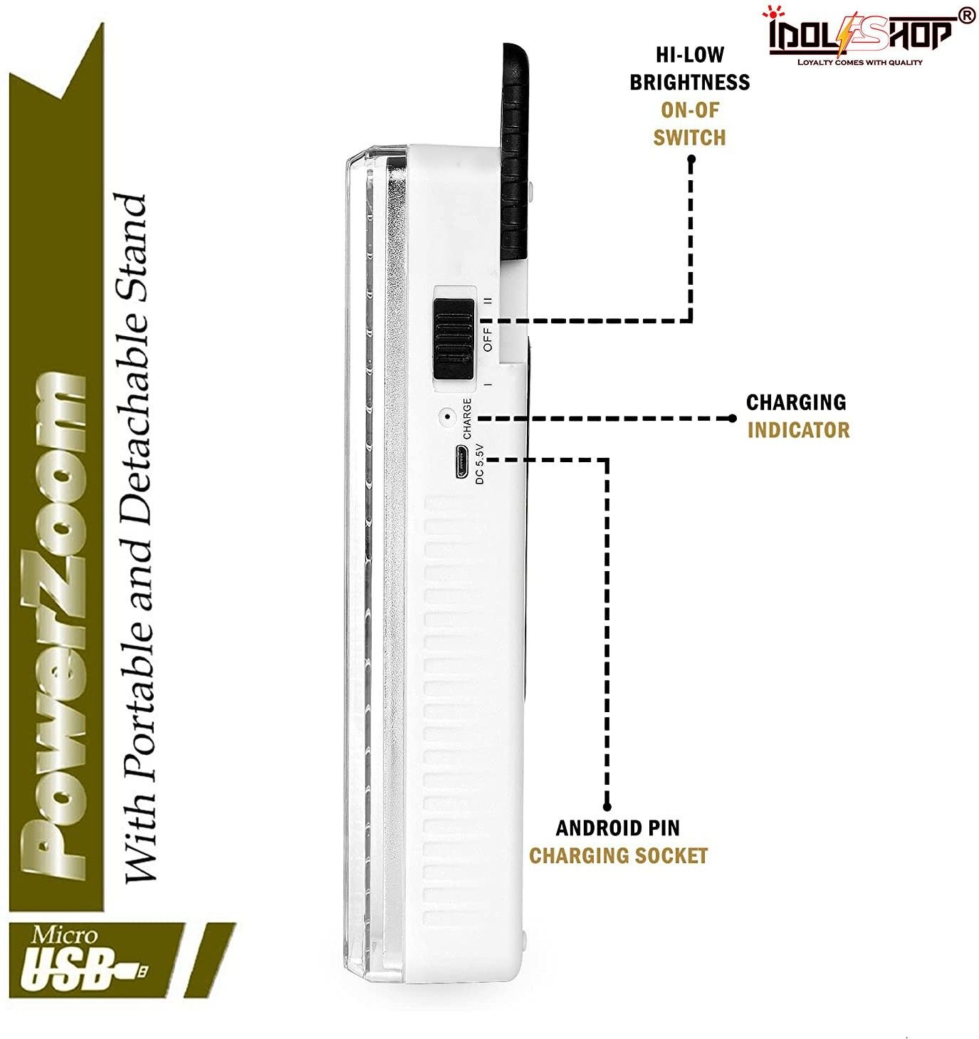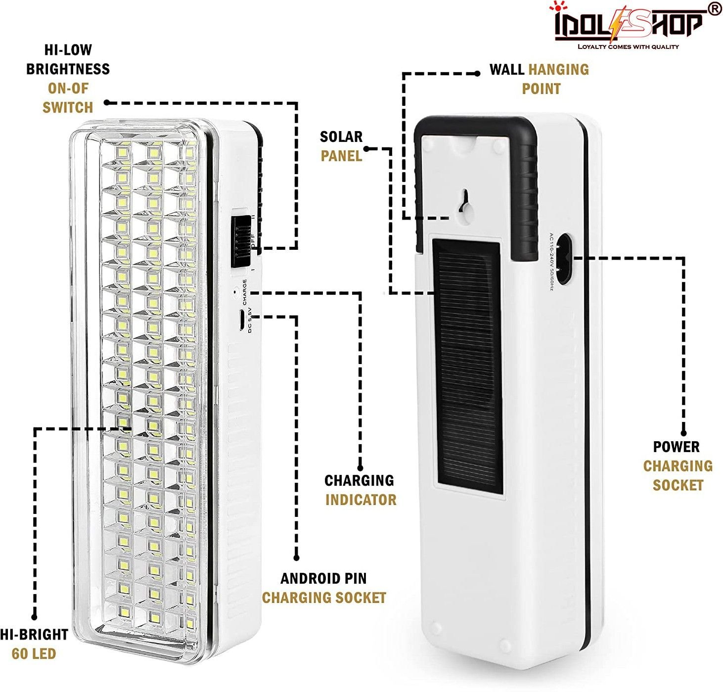 IDOLESHOP 60 High-Bright LED Rechargeable Emergency Light with Android Charging Support (White 02)