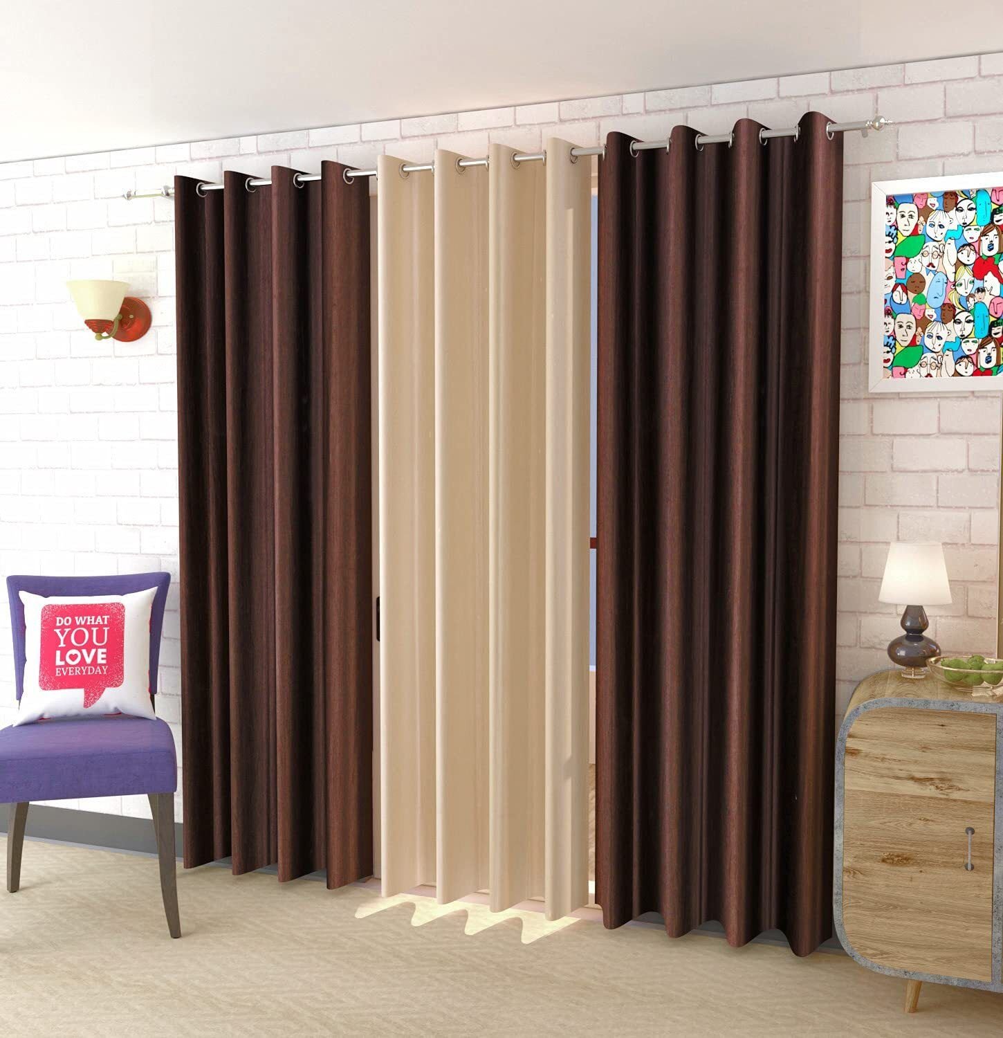 Give your home a warm and elegant makeover with IDOLESHOP room darkening curtains. This pack of 3 in brown and beige offers excellent light control, privacy, and a premium look—perfect for doors and living spaces.