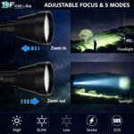 - Zoomable Focus – Adjustable beam for spotlight or wide floodlight
