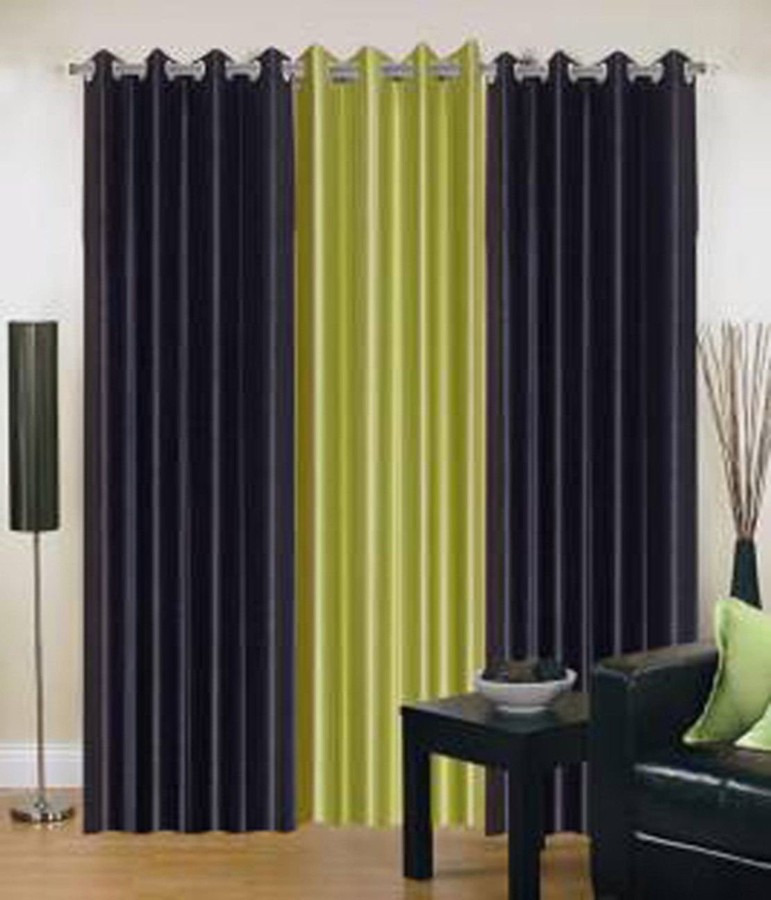 IDOLESHOP 9 ft Long Door Polyester Blackout Curtain (Pack of 3) – Green & Black Solid Curtains