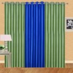 IDOLESHOP 9 ft Long Door Polyester Blackout Curtains (Pack of 3, Green & Blue, Solid)