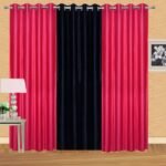 IDOLESHOP 9 ft Long Door Polyester Curtains (Pack of 3, Pink & Black, Solid Design)