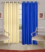 IDOLESHOP 9 ft Long Door Polyester Room Darkening Curtains – Pack of 2 (Blue & Beige, Solid, Eyelet Design)