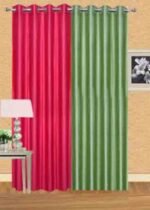 IDOLESHOP 9 ft Long Door Polyester Room Darkening Curtains (Pack of 2, Green & Pink, Solid)
