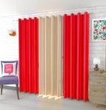 IDOLESHOP 9 ft Long Door Polyester Room Darkening Curtains (Pack of 3, Red & Beige, Plain)