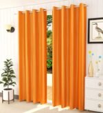 IDOLESHOP 9 ft Long Door Polyester Semi-Transparent Curtains (Pack of 2, Orange, Plain Design)