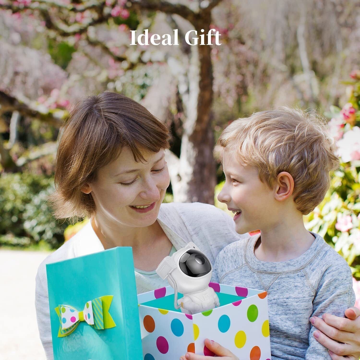 Astronaut galaxy projector with starry sky and nebula effects, remote control, and multiple lighting modes—perfect for bedroom ambiance and décor.