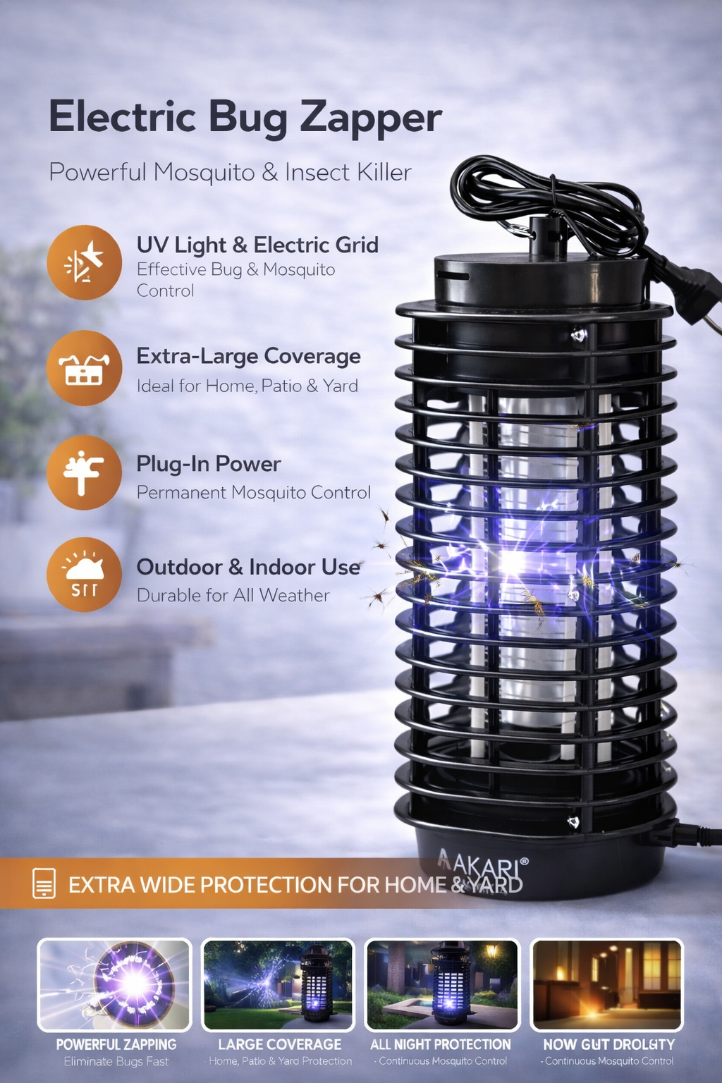 Built-in UV light attracts insects efficiently, while the high-performance electric grid zaps them instantly for quick and effective results.