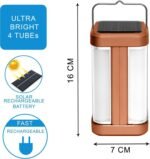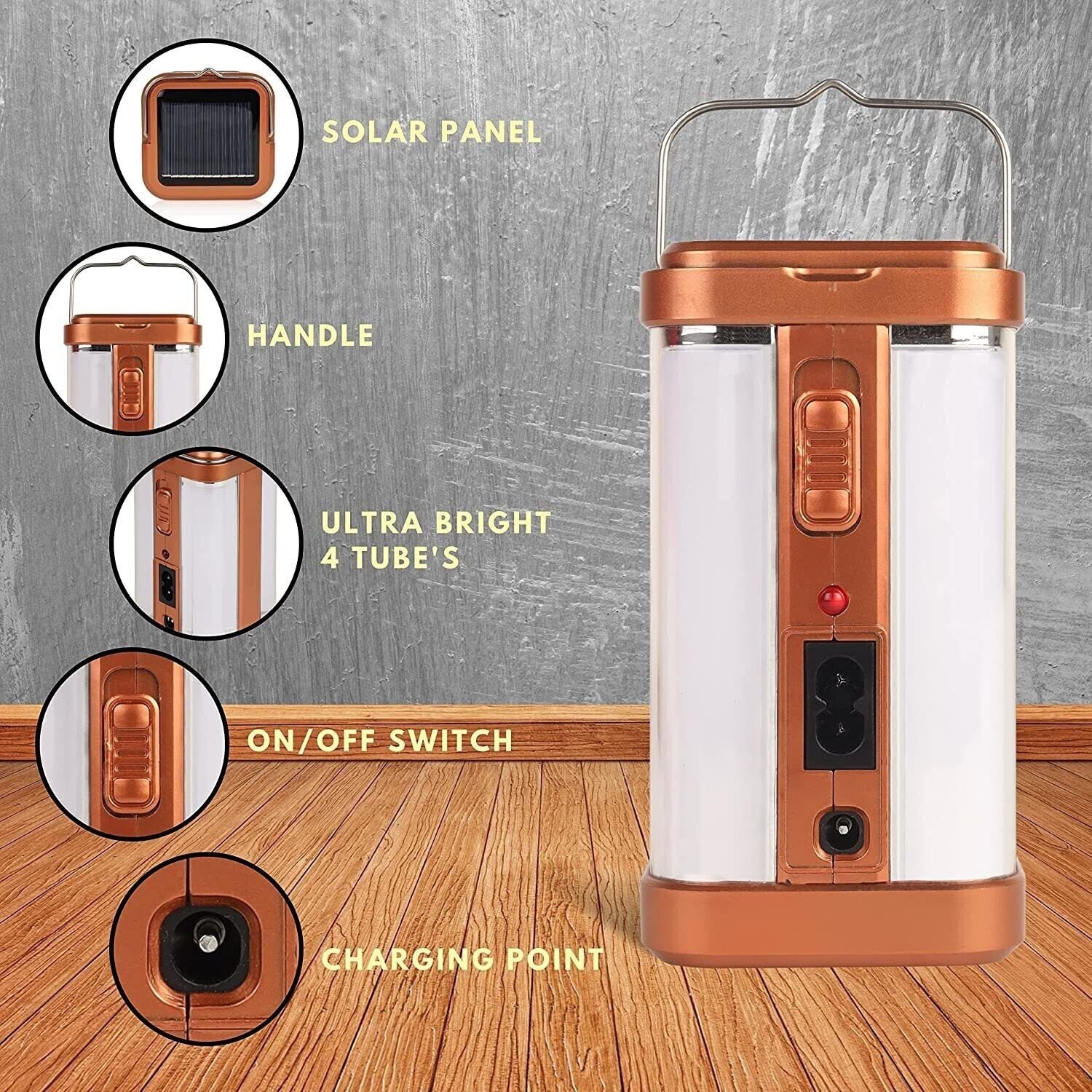 IDOLESHOP Electric & Solar Rechargeable 4 Tube Emergency Light L1157 (80W) – 6 Hours Backup Lantern (Pack of 1)