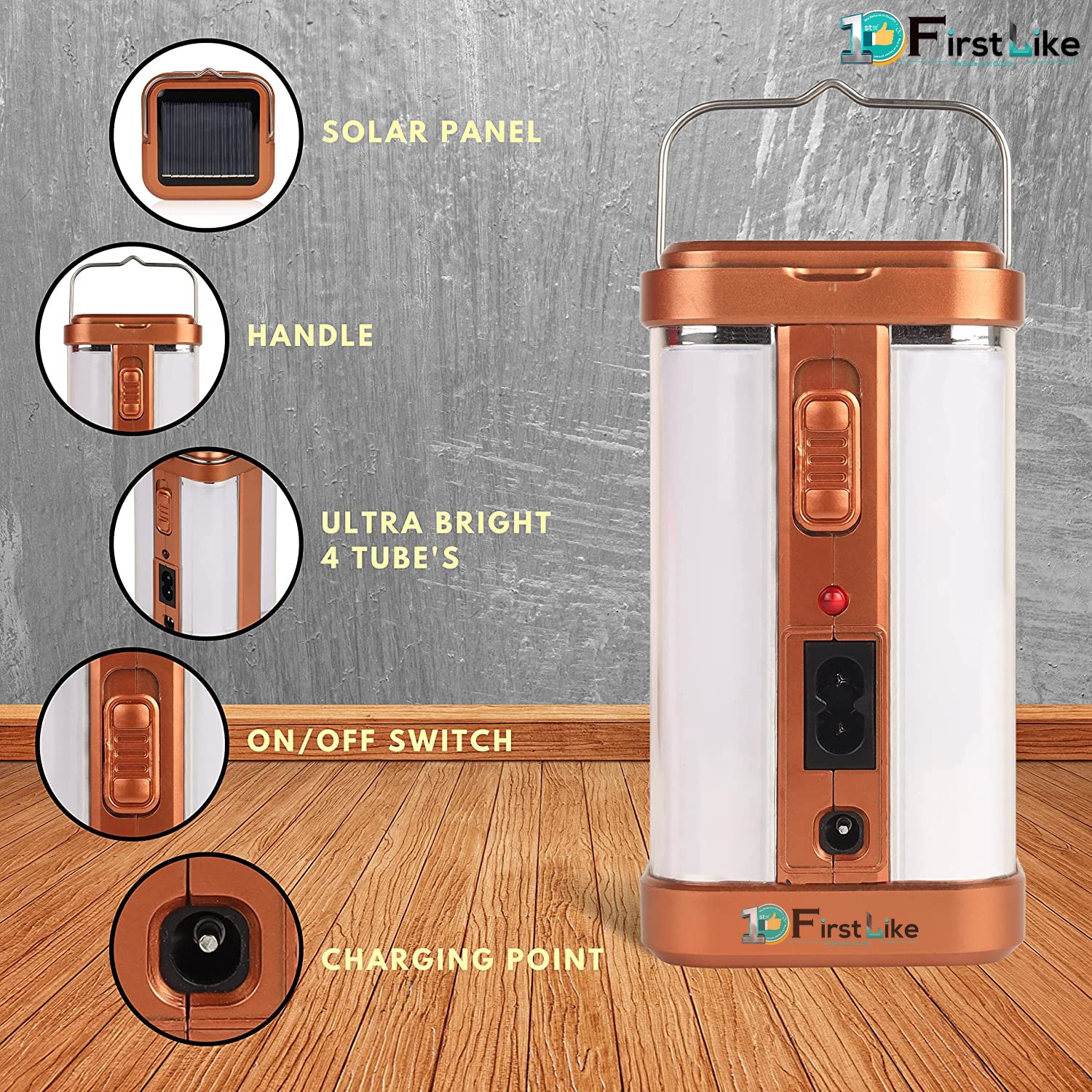 IDOLESHOP Electric & Solar Rechargeable Emergency Lantern 100 Watt, 4 Tube LED Light, 4 Hrs Power Backup, 1500 mAh Battery